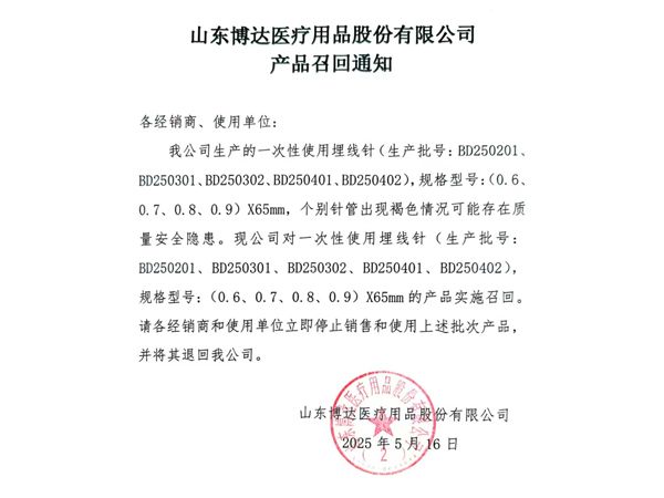山東博達醫(yī)療用品股份有限公司是生產可吸收性外科縫線專業廠家,主要產品有可吸收縫合線 、內窺鏡圈套線、穴位埋線、快吸收美容線、醫(yī)用羊腸線 膠原蛋白線以先進的生物技術提取了健康哺乳動物內臟的膠原蛋白為基材,采用先進的工藝加工而成,線體的主要成分為高純度膠原蛋白,并獲得了國家發(fā)明專利,頒布了YZB/國6301-2013《可吸收性外科縫線》產品標準,并通過了ISO9001:2015和ISO13485:2016質量管理體系認證。